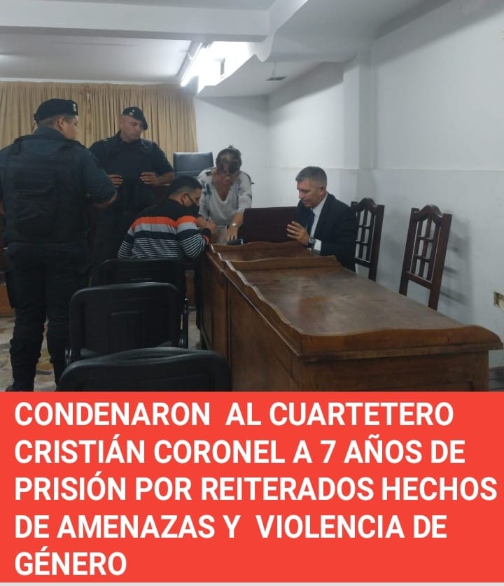 Juicio a cuartetero por violencia de género. Coronel fue condenado. Foto: Radio Valle Viejo miércoles, 5 de abril de 2023 14:54 miércoles, 5 de abril de 2023 14:54 De esta manera el sujeto deberá purgar una pena efectiva tras el juicio que culminó ésta mañana con la condena.