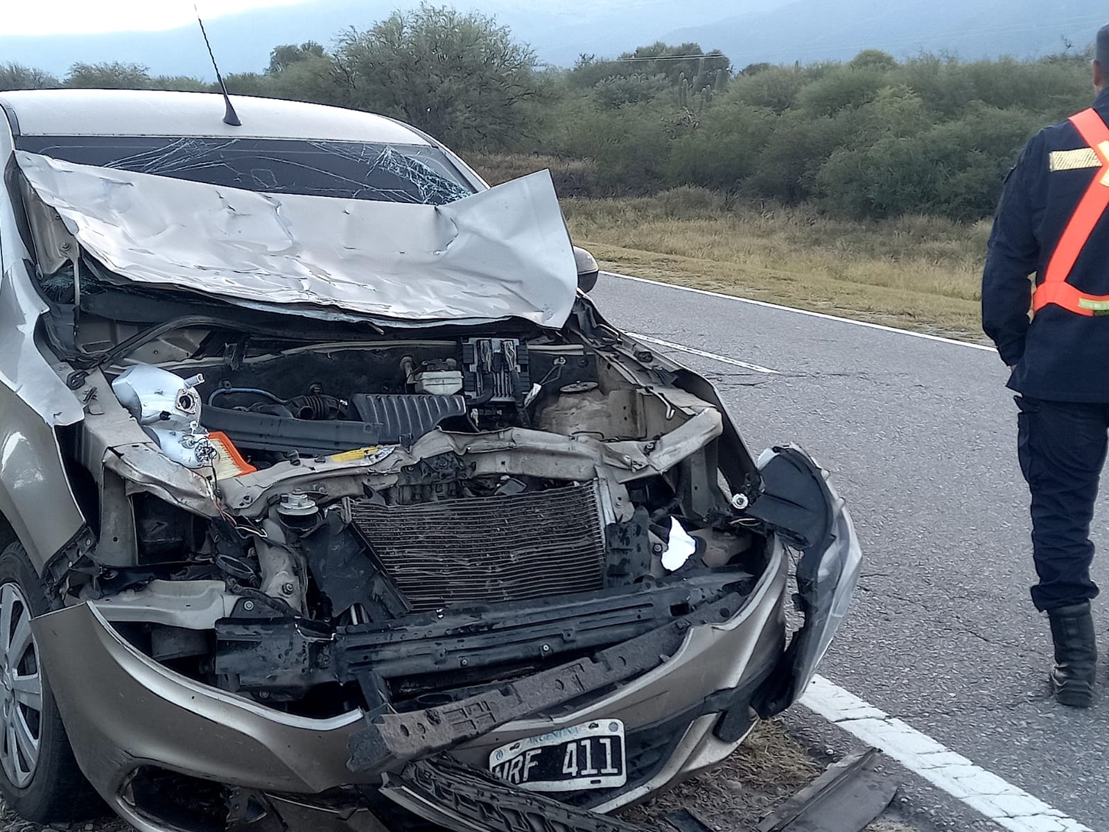 Un oficial de policía que se conducía con su vehículo, un Chevrolet Agile, por Ruta Nacional N°38 a la altura de La Bajada, impactó contra un animal que estaba en medio del camino.