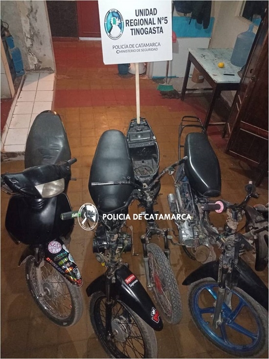 Más tarde, en el barrio 100 viviendas de esa Ciudad, los policías incautaron tres motocicletas de distintas marcas y cilindradas, como así también motopartes del vehículo sustraído.