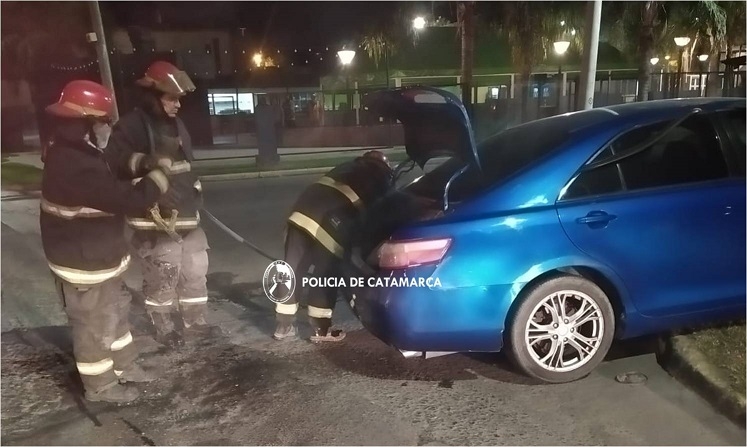 En el lugar, trabajaron policías y efectivos de la Dirección Bomberos de la Policía de la Provincia, quienes luego de realizar tareas de su especialidad, lograron sofocar las llamas, que causaron daños parciales en el rodado.