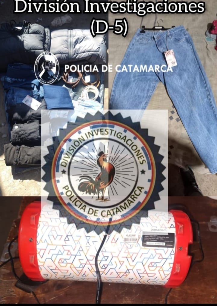 En la oportunidad, se lograron recuperar 9 jeans; 4 cintos de material simil cuero; 2 camperas inflables y 1 parlante de música portátil, con su respectivo cargador, que fueron incautados y puestos a disposición de la Justicia Interviniente, desde donde se impartieron las directivas a seguir.