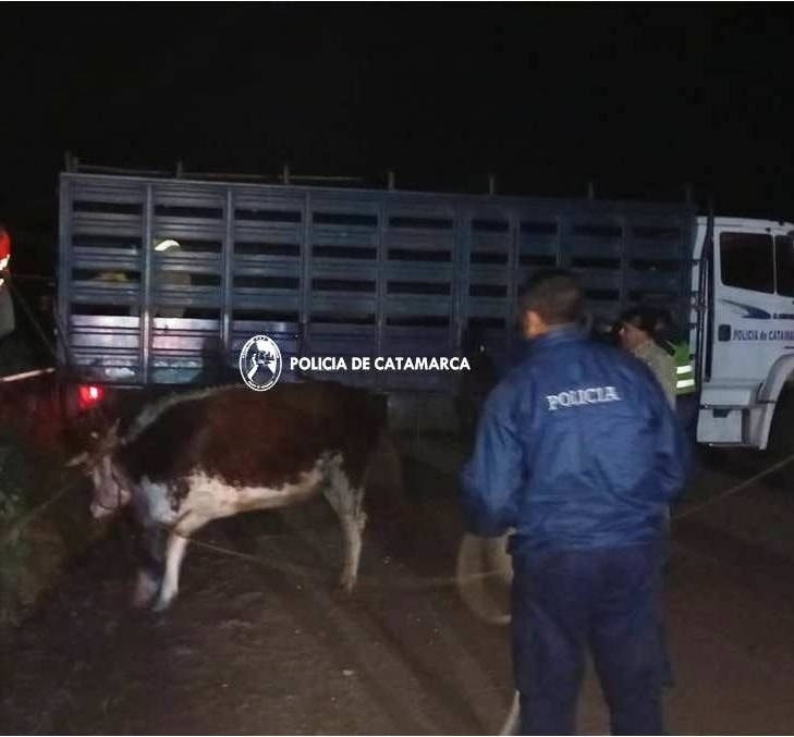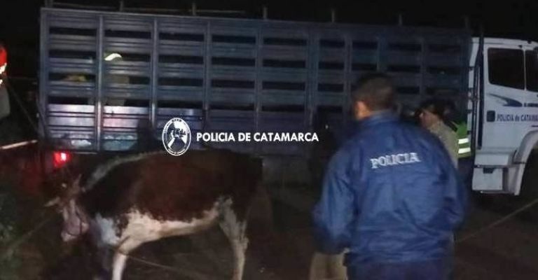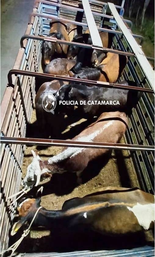 Durante la jornada de ayer, mientras efectivos de la División Policía Montada, dependiente de la Dirección de Unidades Especiales de la Policía de la Provincia, en cumplimiento de la Ley Provincial N° 4851/95, y su modificatoria Ley Prov. N° 5594/19, realizaban recorridos preventivos por la Ruta Provincial N°1, a la altura del empalme con Ruta Provincial N°18, de la localidad de Altos de Singuil, Departamento Ambato, procedieron al secuestro de una (01) yegua pelaje negra listada, miembros posteriores blancos, marca de fuego no legible; un (01) caballo zaino frontino miembros anteriores blancos, marca de fuego no legible; un (01) caballo pelaje zaino, sin marca de fuego; una (01) potranca tostada frontina, marca de fuego parte superior "ES" e inferior "63"; una (01) potranca pelaje lobuno, marca de fuego no legible; un (01) potrillo zaino listado, marca de fuego no legible; un (01) potrillo pelaje zaino frontino miembros anteriores blancos, marca de fuego no legible; un (01) caballo crin largo colorado listado, miembro anterior derecho y posteriores blancos, marca de fuego no legible; una (01) vaca mocha, pelaje oscura overa, señal de sangre en oreja izquierda corazón de abajo, oreja derecha corazón de abajo, marca de fuego no legible; una (01) vaca astuda rosada pampa, señal de sangre en oreja izquierda y derecha corazón de abajo, sin marca de fuego.