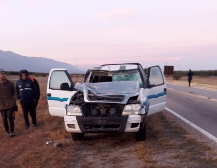 En las primeras horas de esta mañana una camioneta perteneciente a la empresa AYSA (ex DASI) colisionó con un animal que se encontraba sobre la ruta 46 a la altura del emprendimiento olivícola Olivares del Sol, ubicado en el departamento Pomán