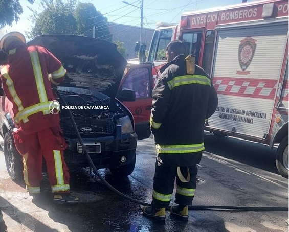 De inmediato policías que llegaron al lugar utilizaron un matafuego de la unidad móvil y lograron sofocar las llamas, que causaron daños materiales parciales, para luego solicitar la presencia de sus pares de la Dirección Bomberos de la Policía de la Provincia, quienes tras realizar tareas de su especialidad, establecieron que el incendio habría iniciado a raíz de una pérdida de combustible en el rodado.