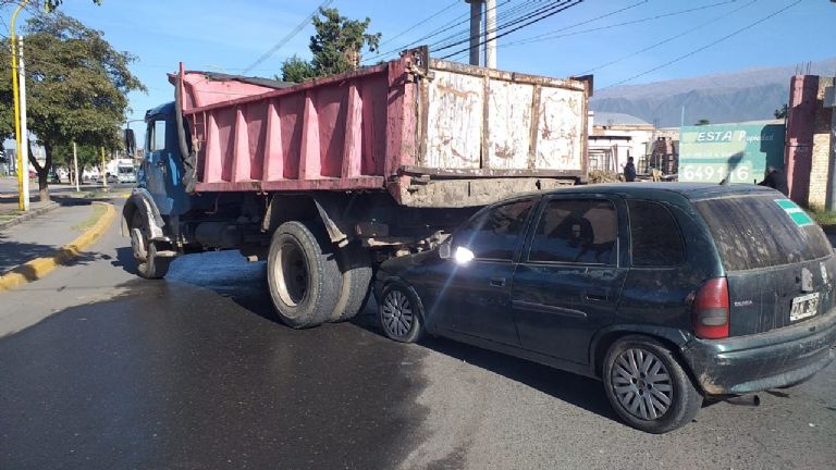 El rodado menor sufrio daños de consideración al quedar incrustado debajo de la caja del camión.