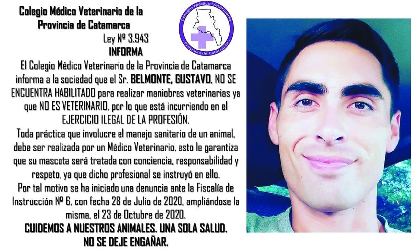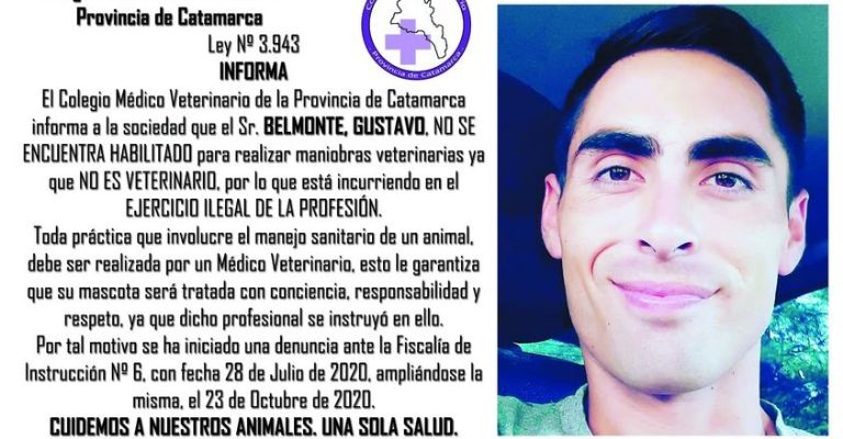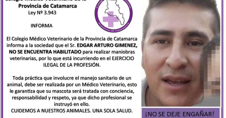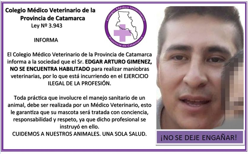 El Colegio Médico Veterinario publicó en su pagina de facebook un recordatorio de las personas que ejercieron maniobras veterinarias sin tener título habilitante.