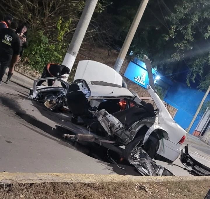 Se registró este domingo a las 05:10 hs., en Av. Presidente Castillo en intersección con Pasaje Higinio Rizo, donde un Volkswagen Bora Sedan, de color Blanco, conducido por Pedro Mauricio Niesto, de 45 años de edad, con domicilio en Capital, quien impacto con una columna del tendido eléctrico y terminó totalmente destrozado.