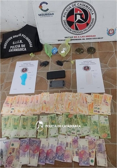 En dichos inmuebles, los Policías encontraron envoltorios de plásticos y dos frascos de vidrio con sustancias, que al ser sometidas a la prueba de campo correspondientes, arrojaron como resultado que se trataría de Cocaína y Marihuana, apta para preparar 44 y 210 dosis respectivamente, que quedaron en calidad de secuestro, al igual que dos plantines de Marihuana, tres teléfonos celulares, tres balanzas digitales, un picador y la suma de $111.100.