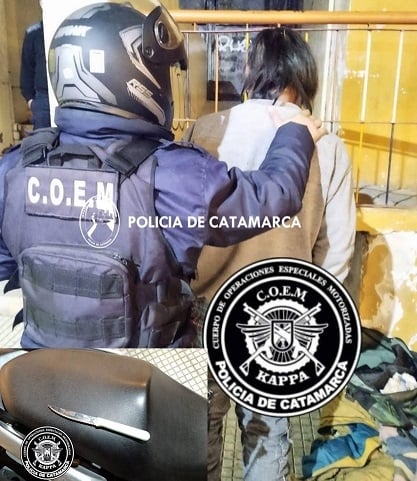 Al realizarle un palpado superficial a esta persona, los policías encontraron entre sus pertenencias, un cuchillo tipo tramontina, que quedó en calidad de secuestro, por lo que finalmente fue trasladada y alojada en la Seccional Primera, que por jurisdicción corresponde, por una supuesta infracción al Código de Faltas de la Provincia.