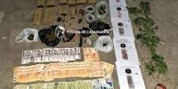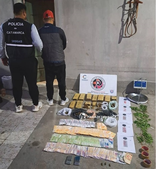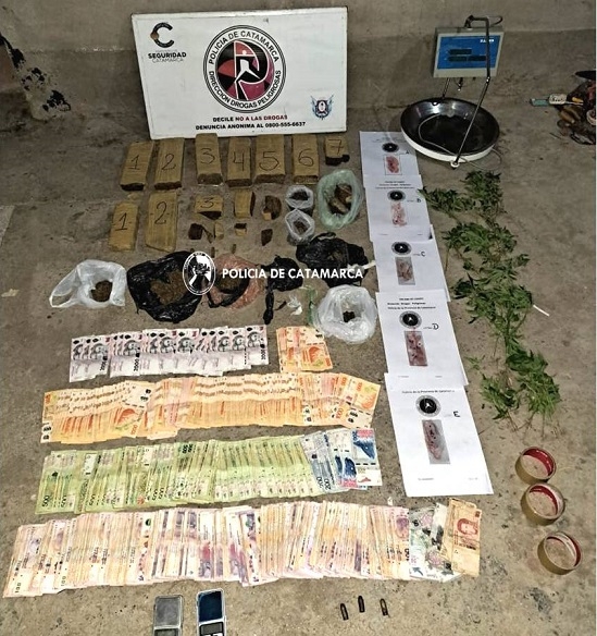 También se secuestraron 64 plantines, la suma de $650.350 discriminados en billetes de distinta nominación, dos balanzas tipo grameras, una balanza comercial, tres cartuchos de calibre 11,25, y un teléfono celular Samsung.