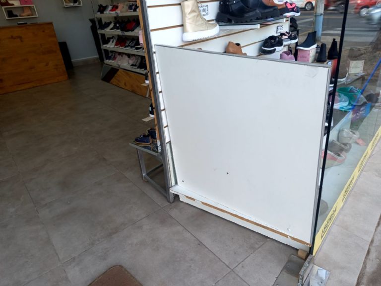 Este martes por la madrugada, un delincuente menor de edad ingresó a una zapatería destruyendo la vidriera principal de una manera muy violenta con el fin de robar.