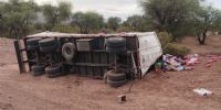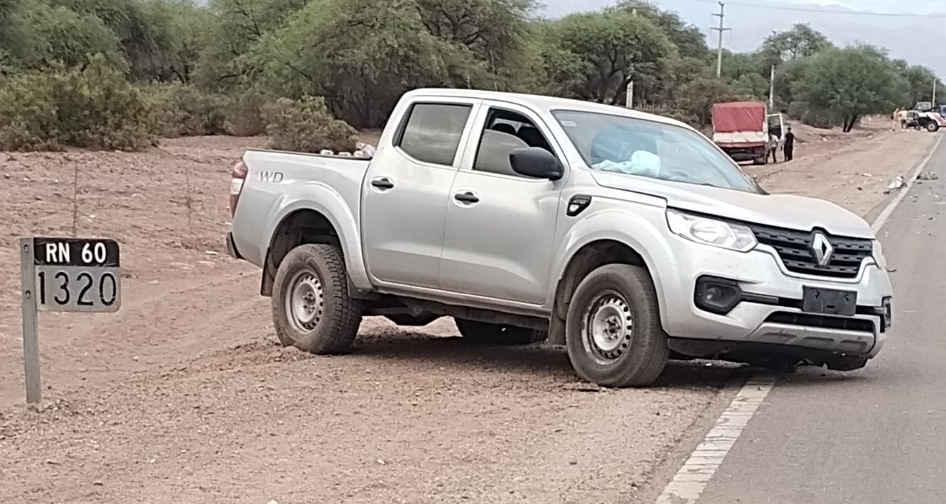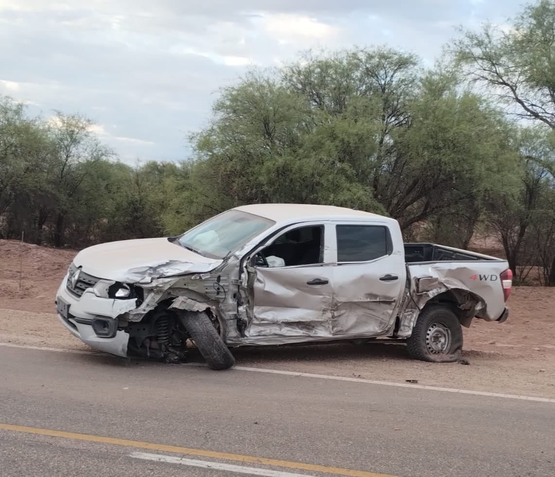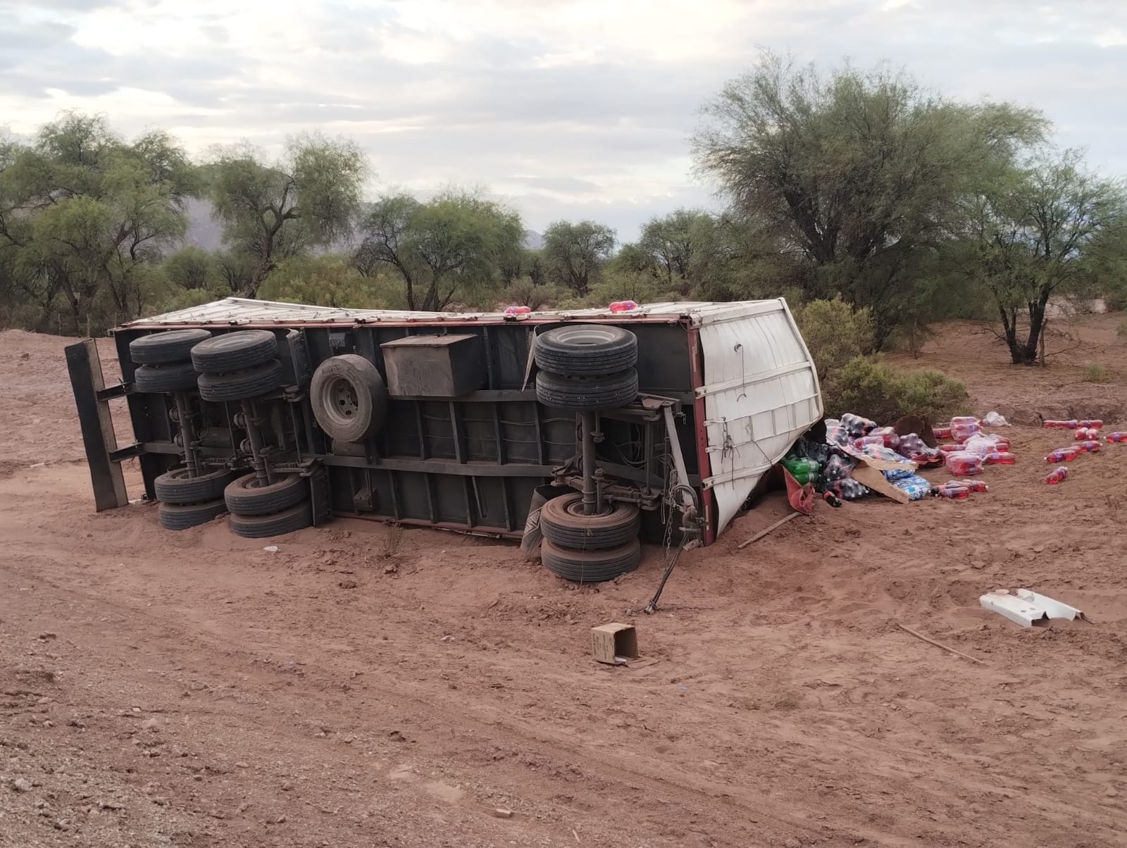 Por causas a determinar, colisionaron un camión y una camioneta y terminó volcando el acoplado.