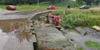 Según los datos proporcionados por personal de la comisaría local, el vehículo circulaba de norte a sur y por razones que son de tareas de investigación volcaron.