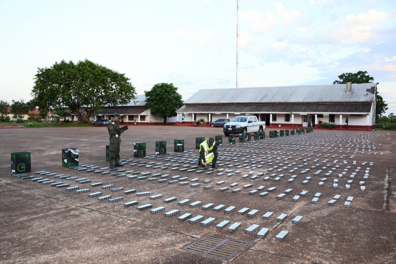 Como resultado de las tareas de rastrillaje y del allanamiento de ambos domicilios, los gendarmes hallaron 22.500 paquetes de cigarrillos de origen extranjero, los cuales se encontraban distribuidos en 45 cajas de cartón.
