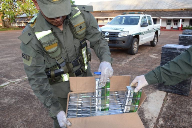 En otro procedimiento en la provincia de Corrientes, efectivos del Escuadrón 57 “Santo Tomé” de Gendarmería decomisó 12.000 atados cigarrillos de contrabando, al abrir seis encomiendas que habían sido interdictadas al controlar un transporte de envíos que provenía de Puerto Iguazú, Misiones, y tenía como destino final Pablo Nogués , Buenos Aires.