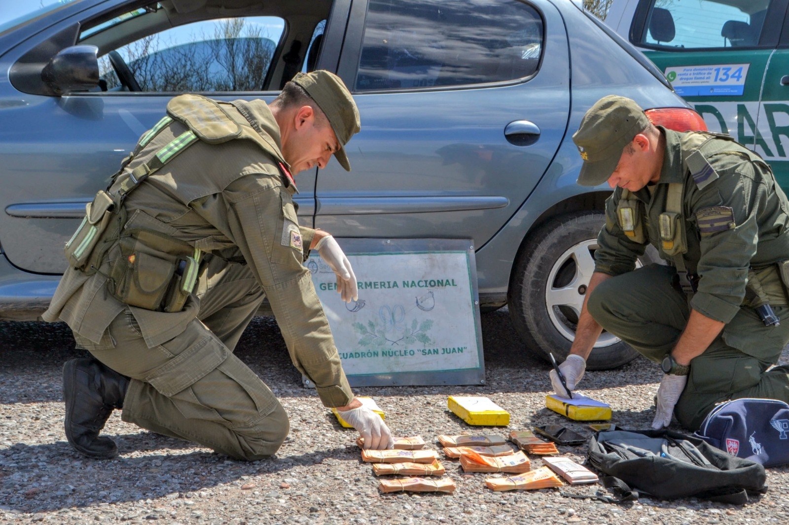 Efectivos de la Gendarmería Nacional Argentina, bajo instrucciones del Ministerio de Seguridad de la Nación que conduce Patricia Bullrich, detuvieron este viernes a un hombre que llevaba un bolso con dinero efectivo y más de 3 kilos de cocaína en su vehículo durante un control de tránsito en la Ruta Nacional 141, San Juan.