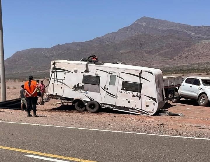 Por causas a determinar, una camioneta que remolcaba una casa de rodante salió de la calzada y terminó volcando bruscamente.
