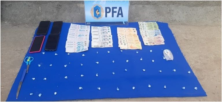 Durante los procedimientos, se concretó la detención del principal sospechoso, se incautaron varias dosis de clorhidrato de cocaína fraccionada y lista para su distribución, una suma de dinero cercana a los 2 millones de pesos en billetes de baja denominación, 7 teléfonos celulares, una camioneta, una balanza digital y demás objetos de interés para la causa.