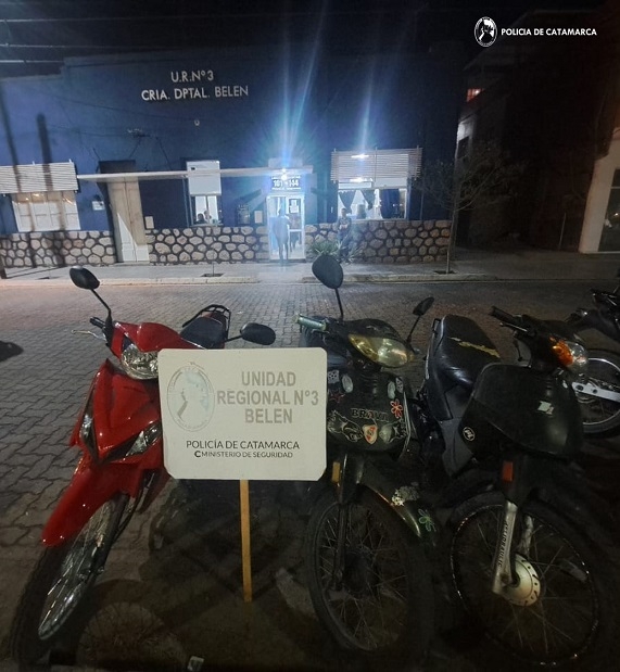 Anoche, mientras numerarios de la Comisaría de Belén llevaban a cabo un control vehicular e identificación de personas junto con personal de Tránsito Municipal, procedieron al secuestro de cuatro motocicletas de distintas marcas y cilindradas, debido a que sus conductores infringieran las disposiciones establecidas en la Ley Nacional de Tránsito Nº 24.449.