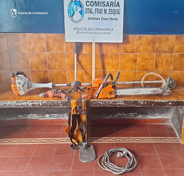 Ante esta situación, los policías procedieron al secuestro de una motoguadaña marca Sthil con su respectivo arnes, una amoladora marca Skil, una motosierra Echo, un taladro Black & Decker, una manguera de nivel y un alargue de unos 10 Mts. aproximadamente, que fueron puestos a disposición de la Fiscalía de Instrucción en turno del Distrito Este.