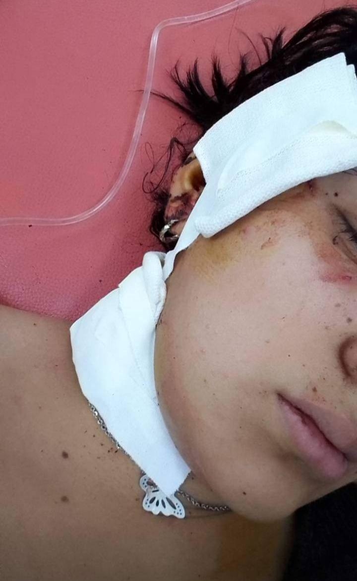 Le propinó una herida punzocortante en el pómulo derecho que le significaron 10 puntos de curación y otra lesión en el abdomen.