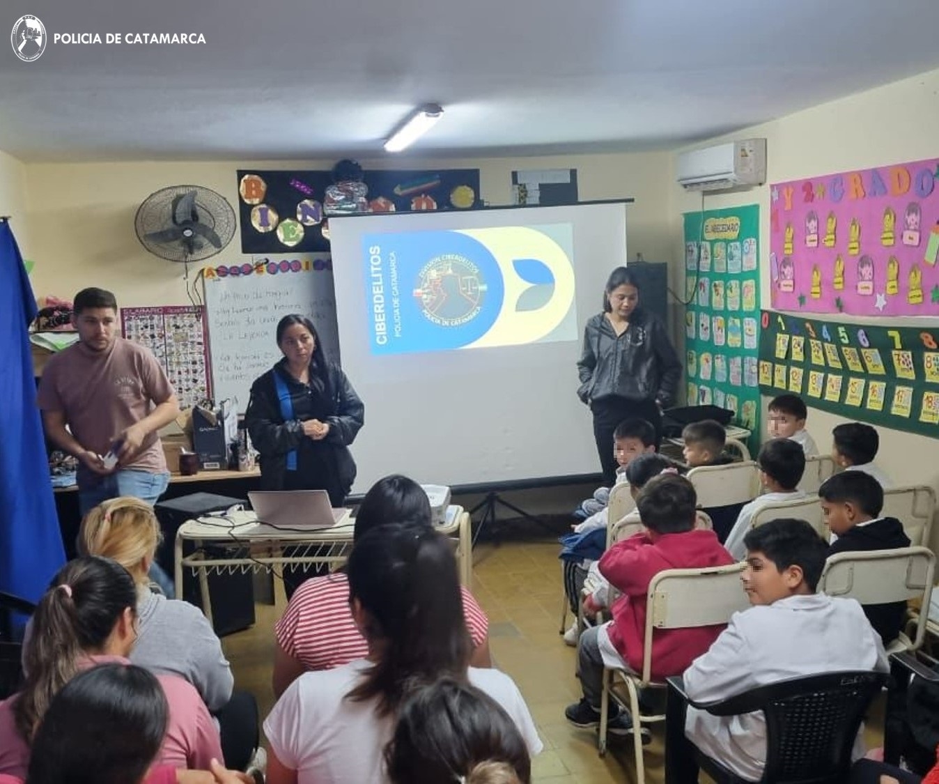 Cumpliendo con los objetivos y lineamientos de trabajo establecidos por el Departamento Investigaciones Judiciales, Jefatura de Policía y el Ministerio de Seguridad, en la mañana de hoy, personal de la División Ciberdelitos de la Policía de la Provincia llegó hasta las Escuelas Primaria Nº 98 y Secundaria N° 72, de la localidad de Chumbicha, Departamento Capayán.