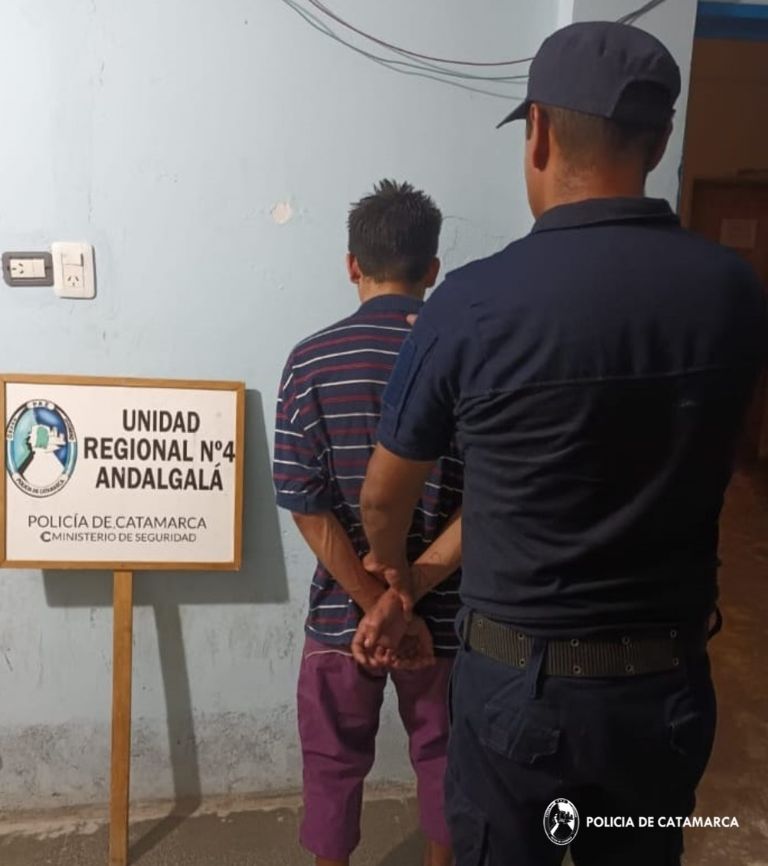 Al llegar al domicilio, efectivos de la Comisaría de Aconquija pudieron interceptar al agresor, quien se encontraba cerca de la escena del crimen. Tras una breve investigación en las inmediaciones, los uniformados procedieron a aprehenderlo y secuestrar la botella que había utilizado para amenazar, así como la motocicleta Honda CG 150 cc con la que se desplazaba.