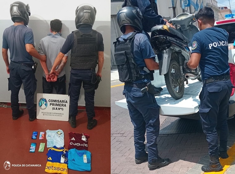 En el lugar, aprehendieron a un hombre de apellido Díaz (38), como así también recuperaron cuatro camisetas deportivas, que quedaron en calidad de secuestro, al igual que cuatro celulares de muestra y una motocicleta Brava 125 cc., de color negro, en la que circulaba el presunto autor, quien fue puesto a disposición de la Fiscalía del Distrito Este, desde donde se indicaron las medidas a cumplimentar.