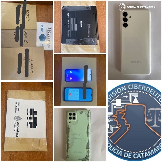 En los inmuebles, los investigadores secuestraron cuatro teléfonos celulares de diferentes marcas y modelos, una tarjeta de memoria y una netbook BGH, que estarían vinculados con delitos de estafa virtual y grooming.