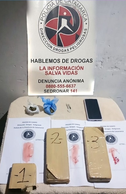 Al irrumpir en un domicilio del barrio Central Norte, los investigadores secuestraron tres trozos rectangulares y dos envoltorios de plástico, que contenían 1,655 Kg., Marihuana, como así también incautaron tres plantas de la variedad Cannabis Sativa y un teléfono celular.