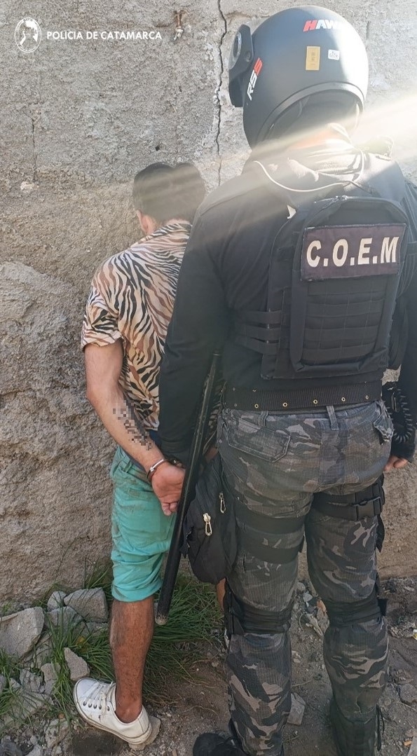 Gracias al seguimiento realizado por las cámaras de seguridad del SAE-911, personal del COEM-Kappa, junto a efectivos de las Seccionales Cuarta y Séptima, logró localizar al presunto autor del hecho en la calle Sumampa, del barrio Eva Perón. El sospechoso, identificado como Salinas (30), intentó evadir a la policía ingresando a un inmueble propiedad de un hombre de 42 años. Durante el procedimiento, también fue aprehendido Acosta (25), quien entorpeció el accionar policial.