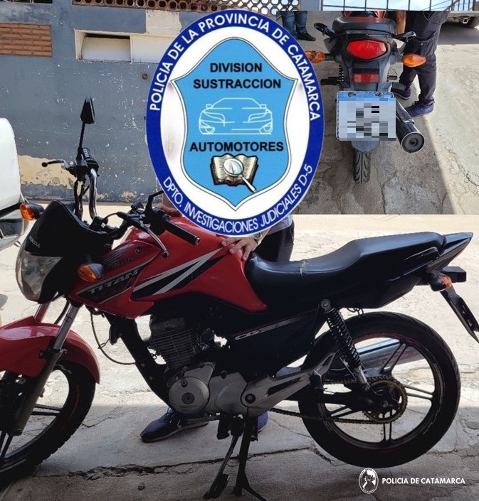 Una vez en el lugar y luego de realizar tareas de su especialidad, los policías procedieron al secuestro de una motocicleta Honda CG Titán 150 cc., de color rojo, debido a que presentaba aparentes signos de adulteración en sus caracteres identificatorios del motor y cuadro, en virtud de lo cual fue puesta a disposición de la Fiscalía de Instrucción en turno del Distrito Norte, quien indicó las medidas a seguir.