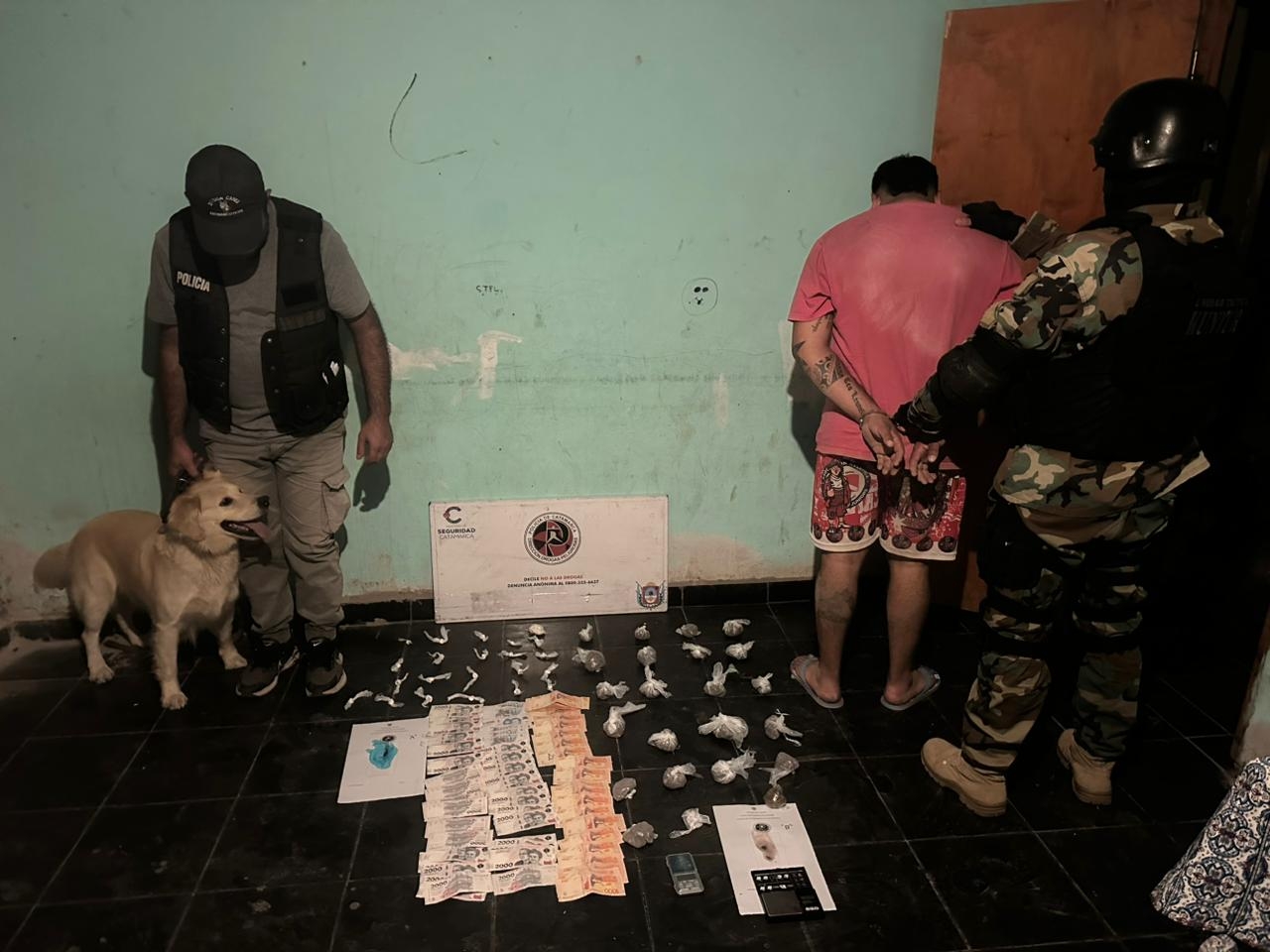 Durante el operativo, se incautaron tres balanzas digitales, dos teléfonos celulares, una suma de 484.750 pesos en efectivo, 121 semillas de Cannabis Sativa, envoltorios con aparente cocaína y 554 gramos de marihuana.