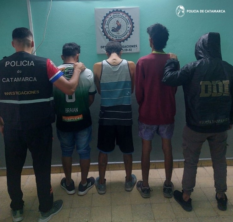 En el lugar, los investigadores conjuntamente con sus pares de los Cuerpos Guardia Infantería Femenino FÉNIX y de Operaciones Especiales Motorizadas (COEM-Kappa), de los Grupos de Intervención Rápida (GIR-Norte y Sur) y de Acción Operativa (GAO), de la Comisaría Novena y de la División Guardia Infantería aprehendieron a cinco hombres de apellidos Vélez (23), Barrionuevo (23), Oliva (33), Barrionuevo (32) y Chávez (42), y a una mujer de 35 años de apellido Barrionuevo.