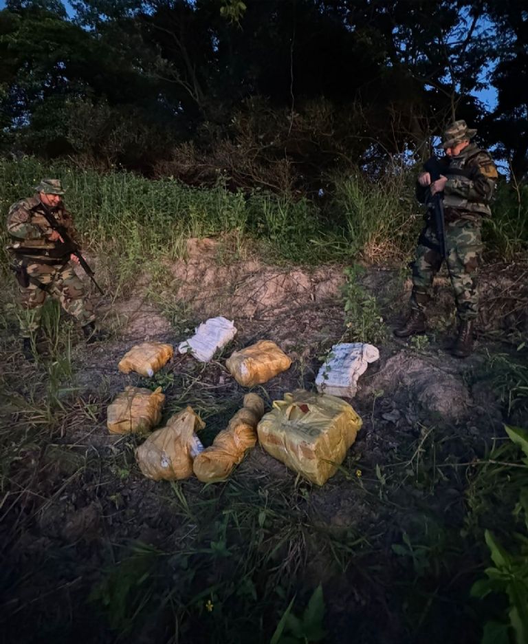 A pesar de que no se encontró a los ocupantes de la embarcación, los agentes realizaron un minucioso rastrillaje en la zona y hallaron, entre las malezas, 7 bultos rectangulares. Al abrir los paquetes, encontraron 109 panes de droga, que fueron sometidos a las pruebas correspondientes, las cuales confirmaron que se trataba de marihuana.