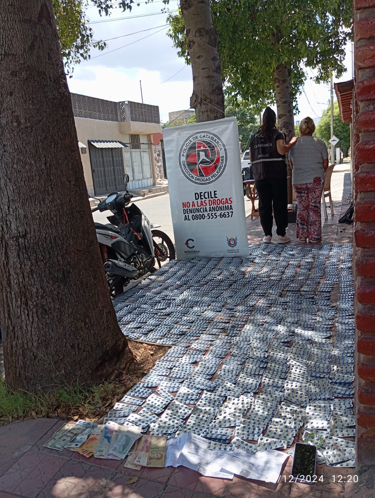 En el lugar, los investigadores dieron apertura a dos (02) cajas embaladas de las que esta persona se habría despojado durante la huida, y en el interior encontraron mil setecientos setenta (1.770) blísters de Midazolam que estarían valuados en cuarenta millones ($40.000.000) de pesos, por lo que quedaron en calidad de secuestro al igual que un (01) teléfono celular Samsung, cincuenta y siete mil ciento veinte ($57.120) pesos, treinta y cinco (US$35) dólares estadounidenses, un (01) remito de orden de encomienda y el rodado mencionado.