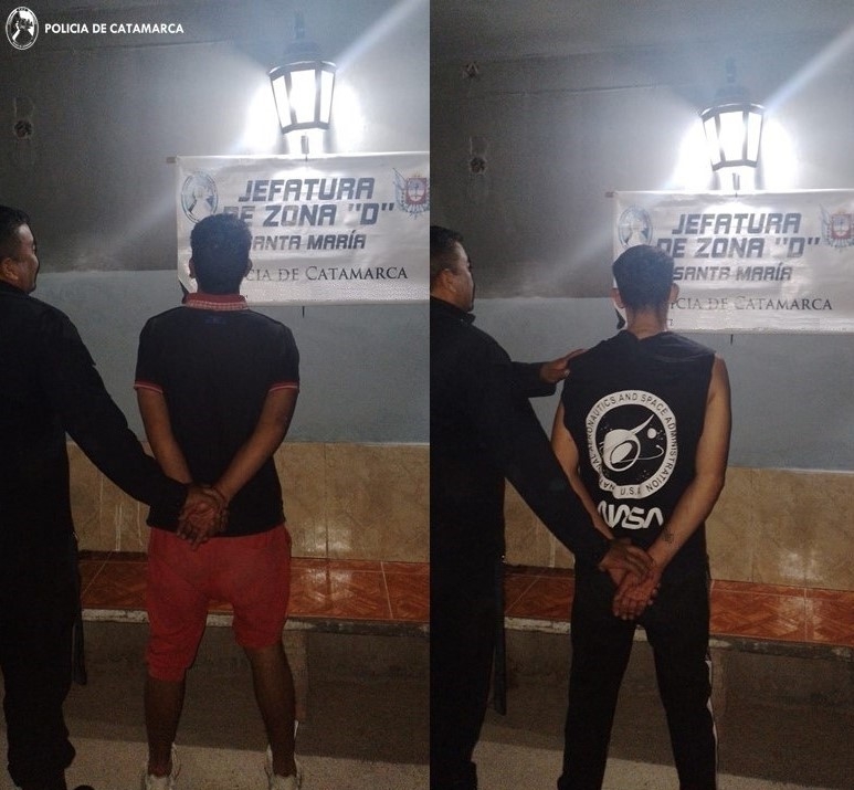 Según informaron fuentes oficiales de la Comisaría Departamental Santa María, el hecho fue descubierto mientras el personal policial realizaba un recorrido de prevención por la zona. Al observar la situación, los efectivos procedieron rápidamente a la aprehensión de los agresores, quienes fueron identificados como Bley (25) y Reinoso (26).