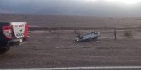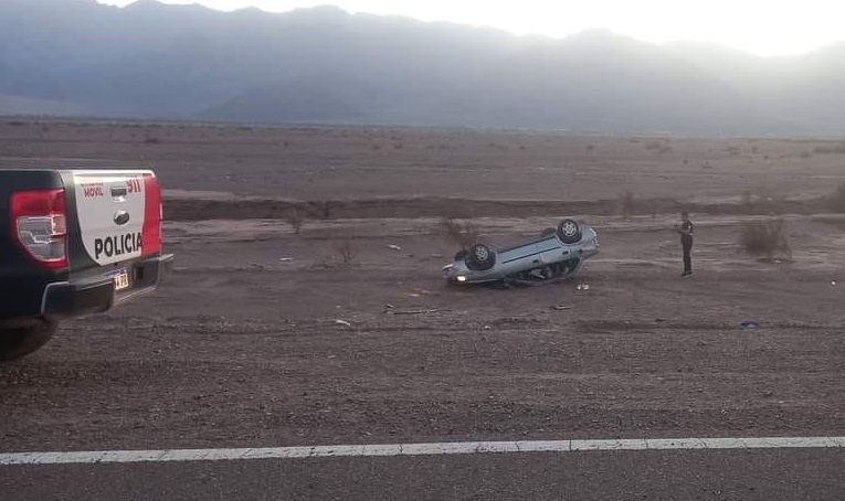El accidente ocurrió entre el puente sobre el Río La Troya y Fiambalá, donde el rodado se salió del camino y volcó en la banquina.