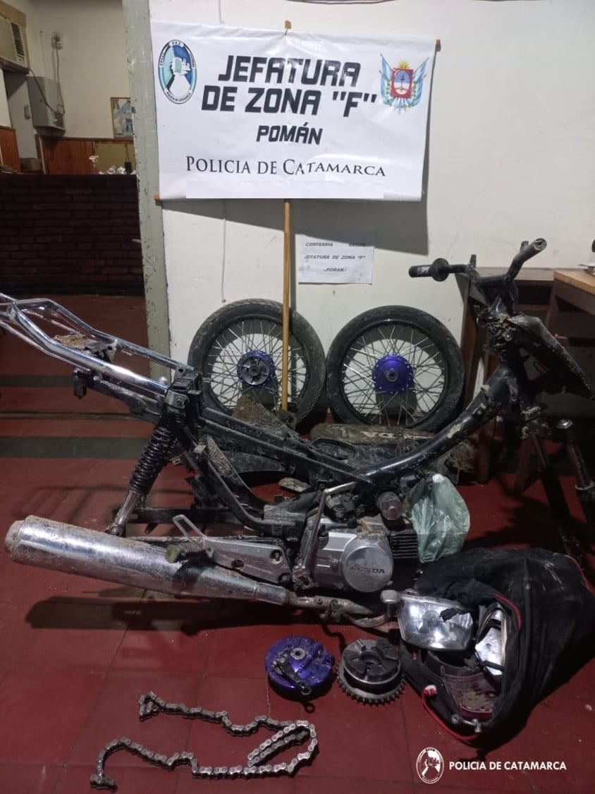 A raíz de una denuncia penal radicada por una mujer mayor de edad, en la que manifestó que personas desconocidas le habrían sustraído una motocicleta Honda Wave 110 cc., tras un arduo trabajo de investigación, personal de la Seccional Saujil, conjuntamente con sus pares de la Subcomisaría de Sijan, llegó hasta un descampado de esa localidad del Departamento Pomán y recuperó el rodado sustraído, que había sido desarmado, por lo que quedó en calidad de secuestro.