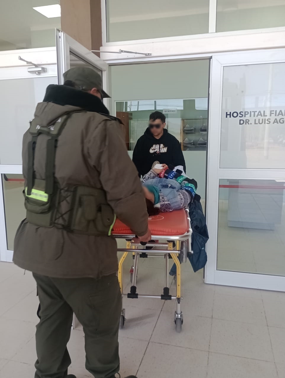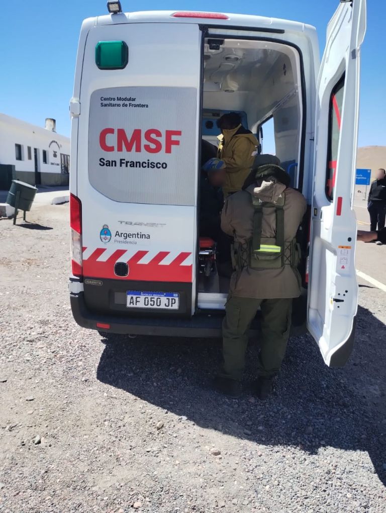 Ante esta situación, los uniformados se desplazaron hasta la altura del kilómetro 1455 de la Ruta Nacional N° 60, conjuntamente con apoyo de personal y medio del centro sanitario modular de frontera ubicado en el complejo San Francisco, donde constataron que estaba una ciudadana de nacionalidad rusa que, tras ser evaluada por el enfermero de turno, presentaba aparentes signos de fractura en el hombro derecho como consecuencia de una presunta caída del rodado en que se movilizaba.