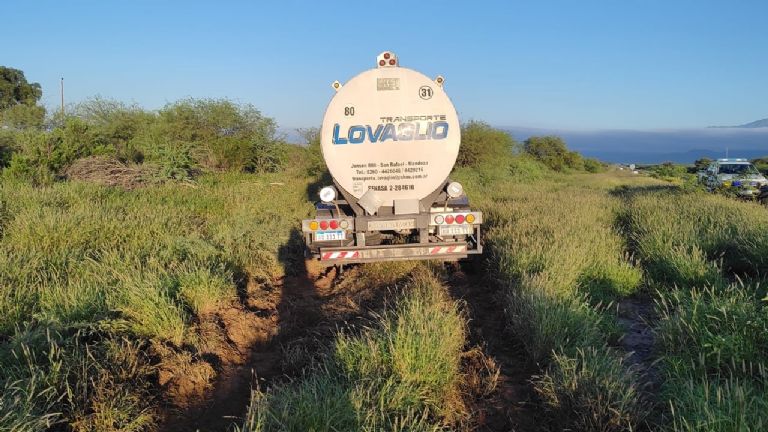 El transporte de carga quedó atascado y en el lugar trabaja personal policial, a la espera de equipos que permitan sacar al camión del lugar en el que se detuvo.