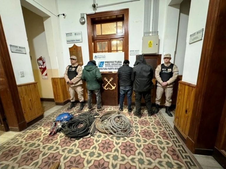 El procedimiento comenzó cuando los efectivos de la Fuerza, que realizaban tareas de patrullaje, observaron la reja abierta en el ingreso al buque. Cuanto ingresaron, observaron a tres hombres en la sala de máquinas robando cables.