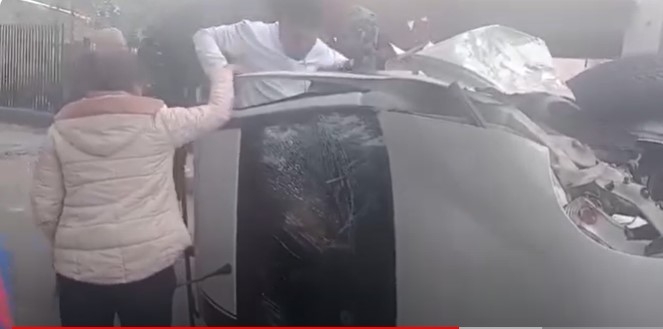 Por causas a determinar, el conductor de una Renault Kangoo, terminó volcando en medio de la calzada.