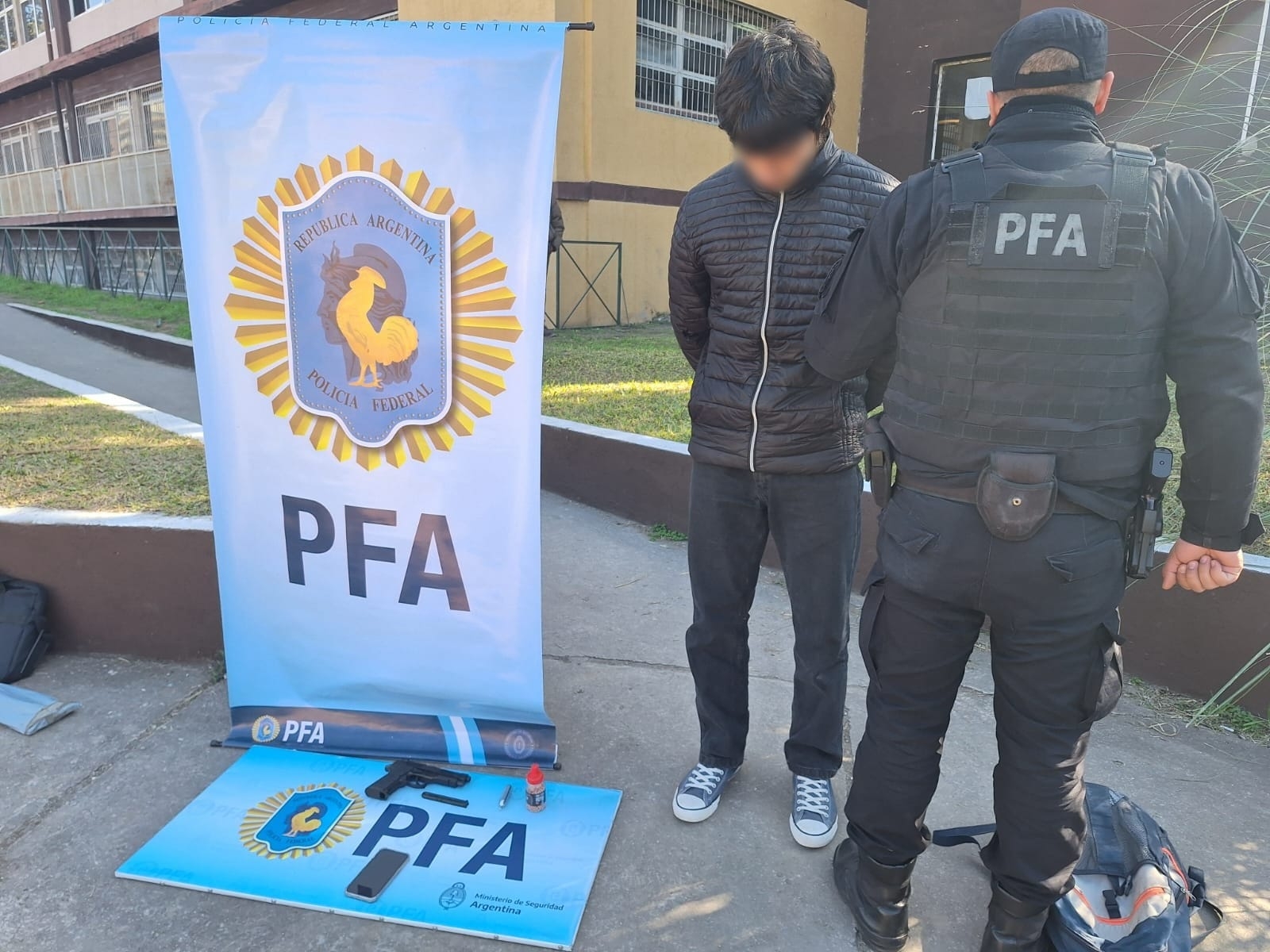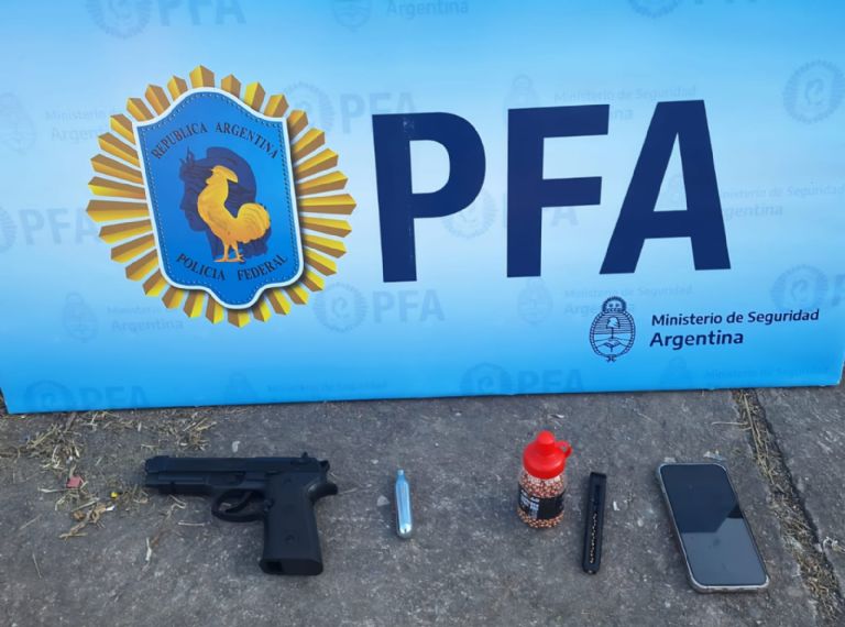 Al requisar sus pertenencias, el policía comprobó que el arma era la réplica de una pistola marca Beretta con almacén cargador, cartucho de gas y un frasco con balines de acero para aire comprimido. Asimismo, el sospechoso no poseía documentación alguna del elemento en cuestión, por lo que fue detenido y el arma secuestrada.