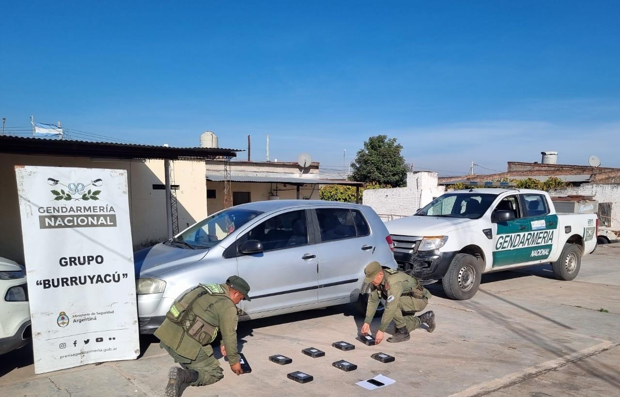Ante esa situación y en presencia de testigos, los gendarmes intensificaron la inspección y detectaron que la mujer había escondido ocho paquetes con una sustancia blanca en la zona del torpedo, dentro del conducto de aire y en la guantera del auto.