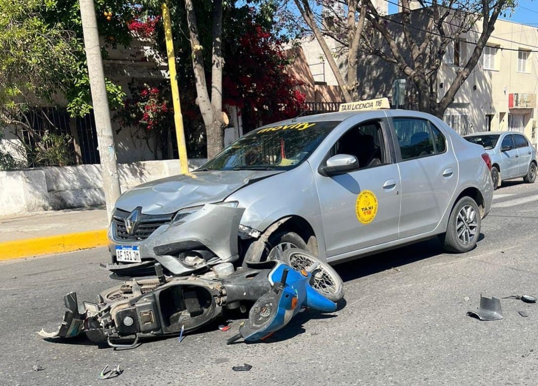 Por causas a determinar, colisionaron una motocicleta Motomel en el que iban Lucas Cipolletti (34) y Zaira Vergara (25) y un automóvil Renault Logan, con licencia de taxi, conducido por Carlos Zalazar (50).