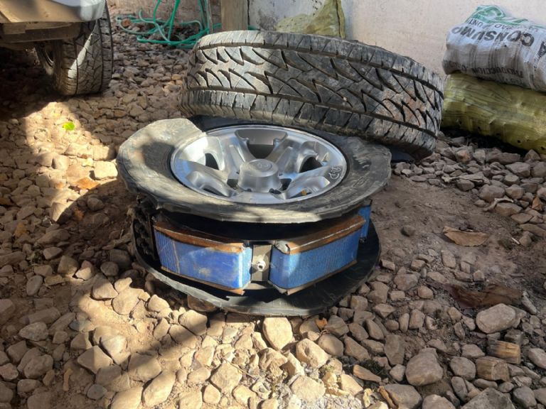 Al profundizar la revisión con herramientas especializadas, logramos abrir las cubiertas y encontramos 136 paquetes rectangulares. Las pruebas realizadas en el lugar confirmaron que contenían cocaína, con un peso total de 110 kilos y 128 gramos.