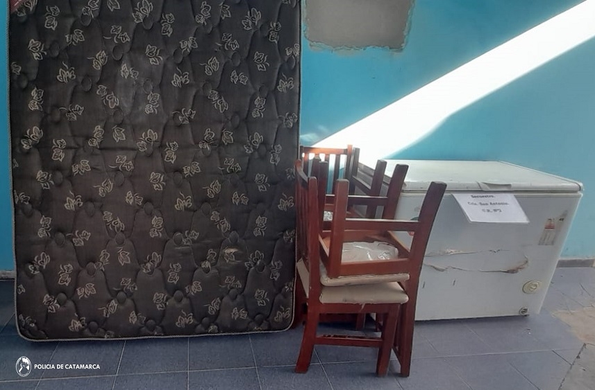 Al finalizar, los investigadores recuperaron un freezer marca Gafa, cuatro sillas de madera, y un sommier de dos plazas, que fueron incautados y puestos a disposición de la Fiscalía de la Sexta Circunscripción Judicial, desde donde se impartieron las medidas a seguir.