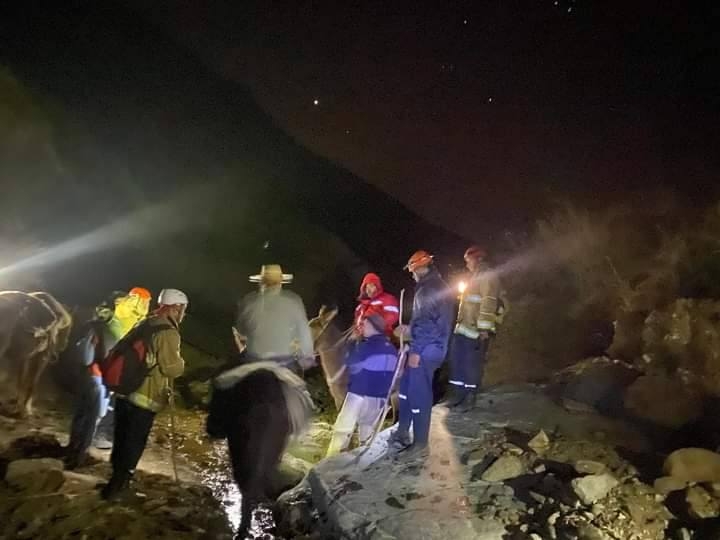 Los cinco rescatistas llegaron a la zona de encuentro con baqueanos y en equipo comenzaron las labores de auxilio.