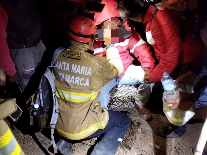 Finalmente, después de 10 horas de intenso trabajo, el herido fue rescatado con éxito y bajado a pulso hasta donde esperaba una ambulancia que lo trasladó al hospital local. Fuente: Radio Valle Viejo